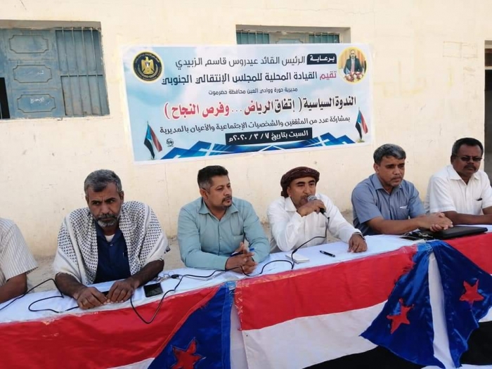 نظمت الإدارة السياسية في المجلس الانتقالي الجنوبي بمديرية حورة ووادي العين، بحضرموت، اليوم السبت، ندوة سياسية بعنوان "اتفاق الرياض.. وفرص النجاح".