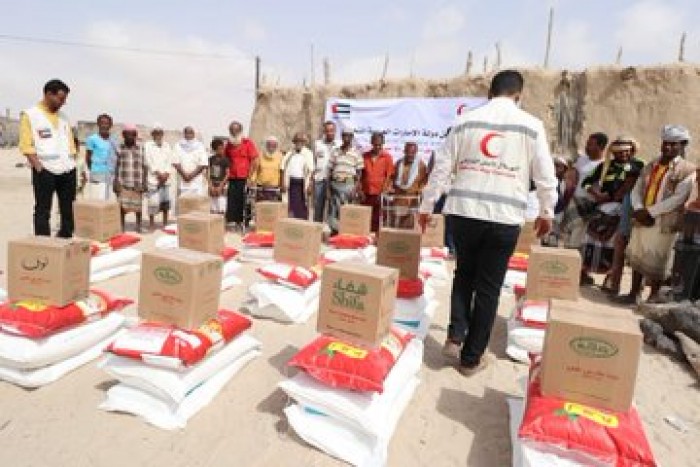 في إطار جهودها الإنسانية والإغاثية، قامت هيئة الهلال الأحمر الإماراتي، بتسيير قافلة إغاثية لذوي الدخل المحدود بمنطقة الجويري في مديرية رضوم بمحافظة شبوة.