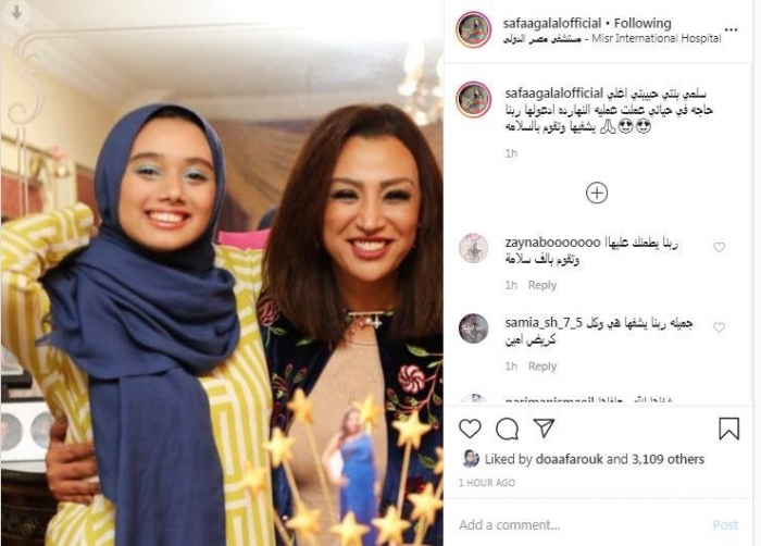 ونشرت صفاء، صورة تجمعها مع ابنتها عبر حسابها على"إنستجرام"، وعلقت: "سلمي بنتي حبيبتي أغلى حاجة في حياتي.. عملت عملية النهاردة.. ادعولها ربنا يشفيها وتقوم بالسلامة".