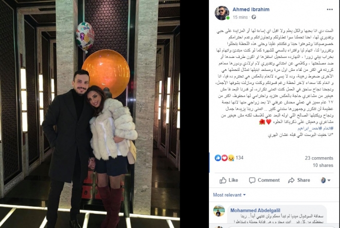 أضاف: "لو قدرنا البعد فا مش هيغير من مشاعري حاجة بالعكس هتزيد واحترامي لها محفوظ، أكتر من ١٧ عام مميز في عملي محدش عرفني إلا بعد زواجي منها لأنها نجمة عظيمة لن تتكرر وجمهورها سندني كتير.. أتمنى ربنا يزيدها جمال ونجاح ويكتبلها الصالح اللي أوله البعد عني للأسف لكنه مش هيغير من مشاعري وهعيش على ذكرياتنا الحلوة".