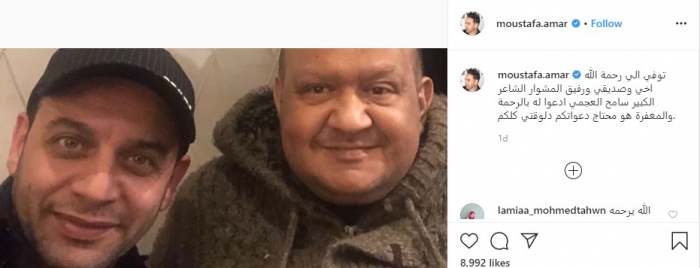 نشر الفنان مصطفى قمر عبر حسابه الشخصي بموقع "إنستجرام" صورة تجمعه بصديقه الشاعر الراحل سامح العجمي، رفيق مشواره الفني.