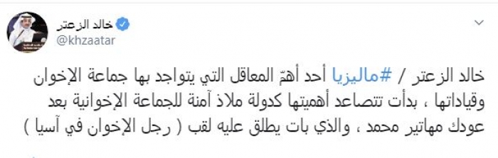 الزعتر: ماليزيا أهم معاقل جماعة الإخوان وقياداتها