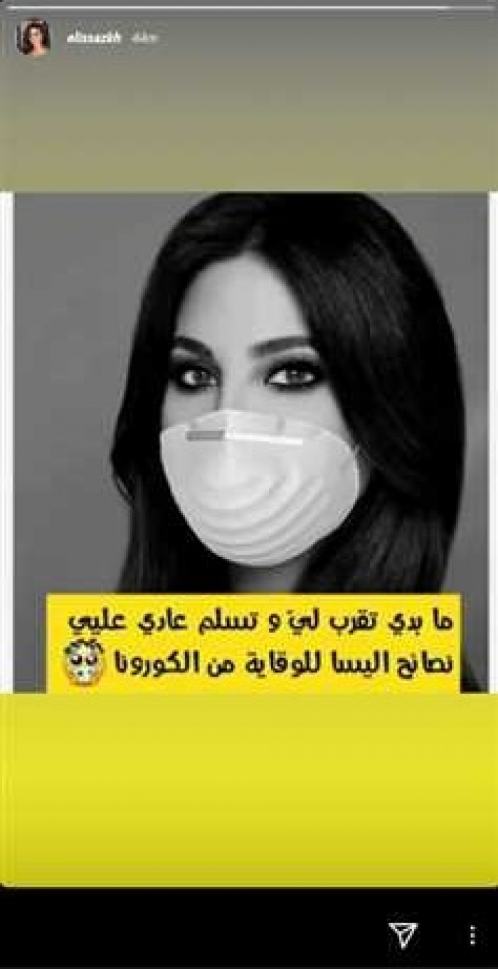 نشرت إليسا عبر خاصية الاستوري بتطبيق "انستجرام" صورة ثابتة لوجهها وهي ترتدي كمامة ومكتوب من تحته كلمات من أغنيتها "كرهني".