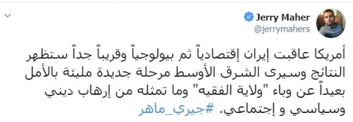 قال الكاتب الصحفي اللبناني جيري ماهر، اليوم، إن المنطقة العربية ستشهد مرحلة جديدة بعيدًا عن وباء إيران.