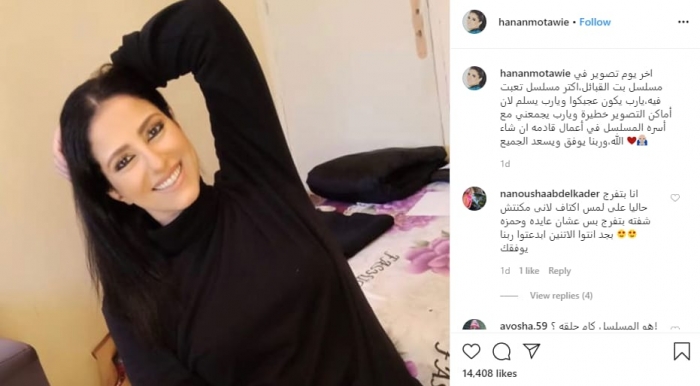 ونشرت "حنان"، صورة لها من آخر يوم تصوير وعلقت عليها قائلة: "آخر يوم تصوير في مسلسل بت القبائل، أكتر مسلسل تعبت فيه، يارب يكون عجبكوا ويارب يسلم لإن أماكن التصوير خطيرة، ويارب يجمعني مع أسرة المسلسل في أعمال قادمة إن شاء الله، وربنا يوفق ويسعد الجميع".