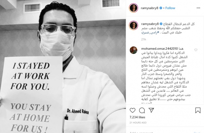 وجه الفنان المصرري رامي صبري، عبر حسابه الرسمي بموقع إنستجرام، رسالة دعم للأطباء لمجهوداتهم الكبيرة في مواجهة فيروس كورونا المستجد.