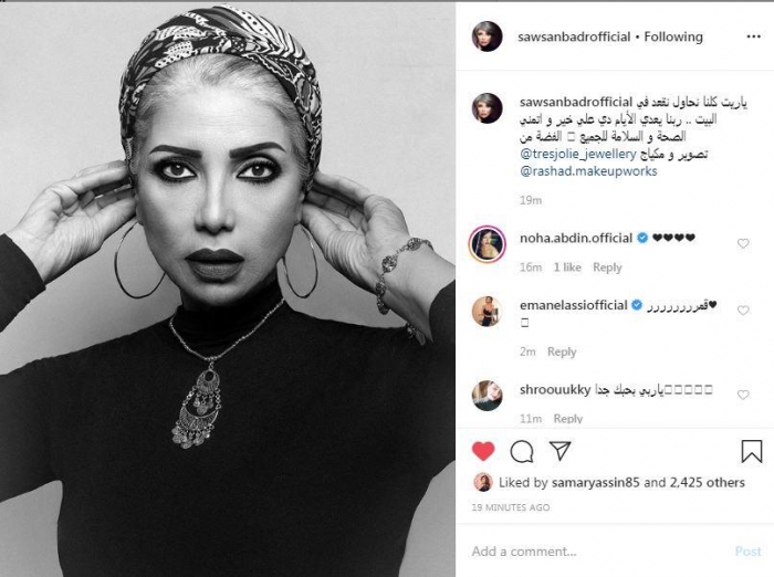 وتابعت في تعليقها على صورة لها :"ياريت كلنا نحاول نقعد في البيت.. ربنا يعدي الأيام دي على خير وأتمنى الصحة والسلامة للجميع".