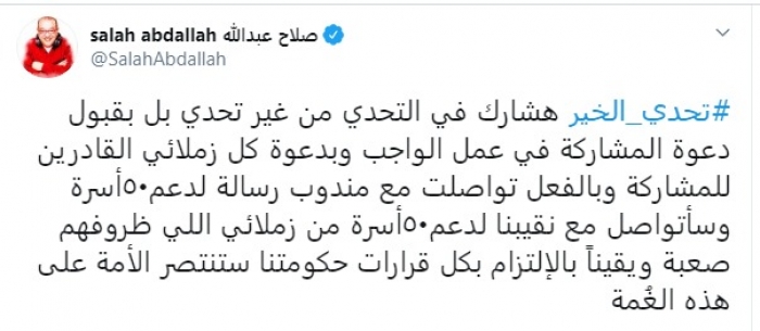 صلاح عبدالله يشارك في تحدي الخير ويدعم 100 أسرة