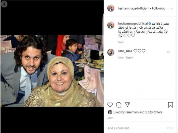 ونشر هشام، صورته مع والدته عبر حسابه على"إنستجرام"، وعلق: "معلش يا ماما عيد ميلادك جاي مش في وقته، ومش عارفين نحتفل بيكي.. كل سنة وإنتي طيبة وربنا يخليكي لينا".