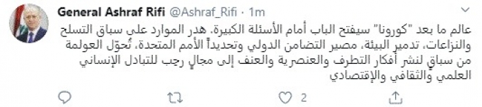 غرد الوزير اللبناني السابق اللواء أشرف ريفي، اليوم، عن العالم بعد انتهاء أزمة فيروس كورونا.
