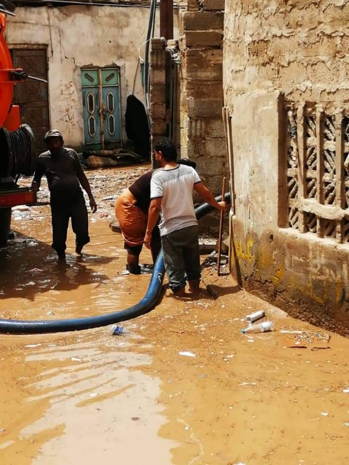لمواجهة آثار السيول.. إزالة المياه والمخلفات وإصلاح الكهرباء في صيرة