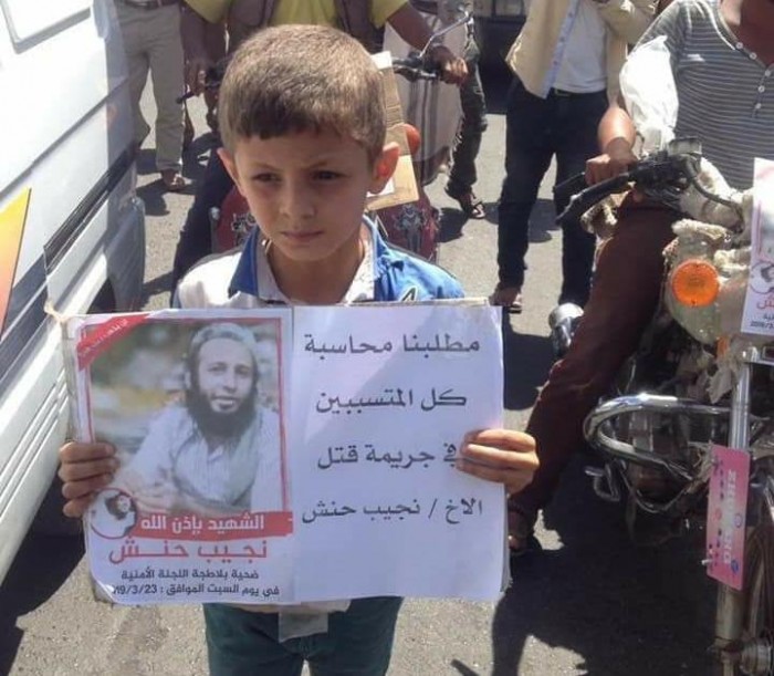 ولفت إلى أن من قتل شقيقه هم أنفسهم من يشاركون حاليا في الحملة الأمنية في تعز، مؤكدا أن دم الشهيد المظلوم نجيب الحنش سيظل لعنة تطارد كل من شاركوا في الجريمة.
