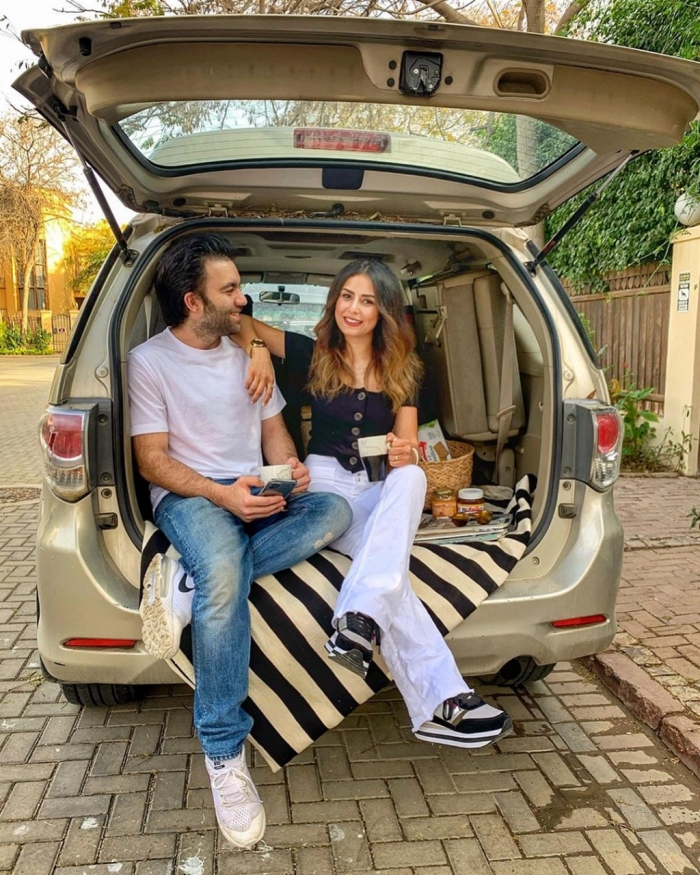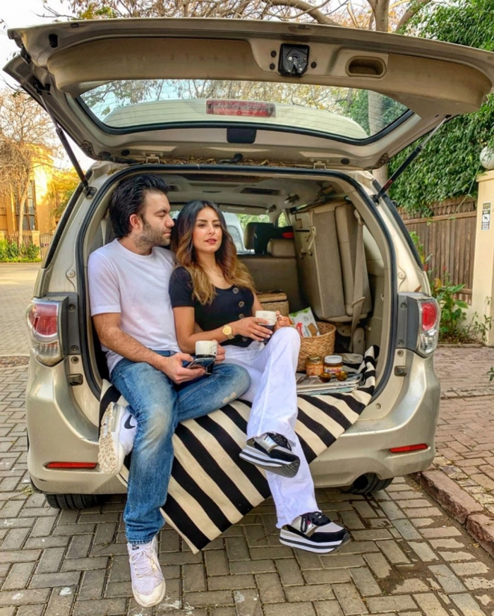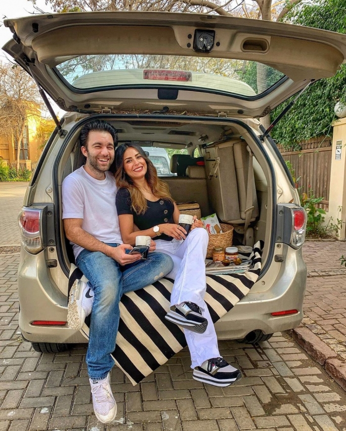 وظهرت ريهام بجوار زوجها في شنطة السيارة، وعلقت على الصور: "بما إن الخروج ممنوع فقولت أعمل خروجتي في العربية، التغيير مطلوب برضه"، كما تناولت ريهام أيمن إفطارها في سيارتها بصحبة زوجها كنوع من تغيير روتين الصباح.