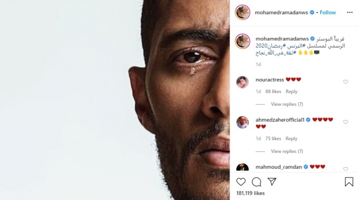 ونشر "رمضان" صورة له وظهر فيها وهو يبكي، علق قائلًا: "قريبا البوستر الرسمي لمسلسل البرنس 2020، ثقة في الله نجاح".