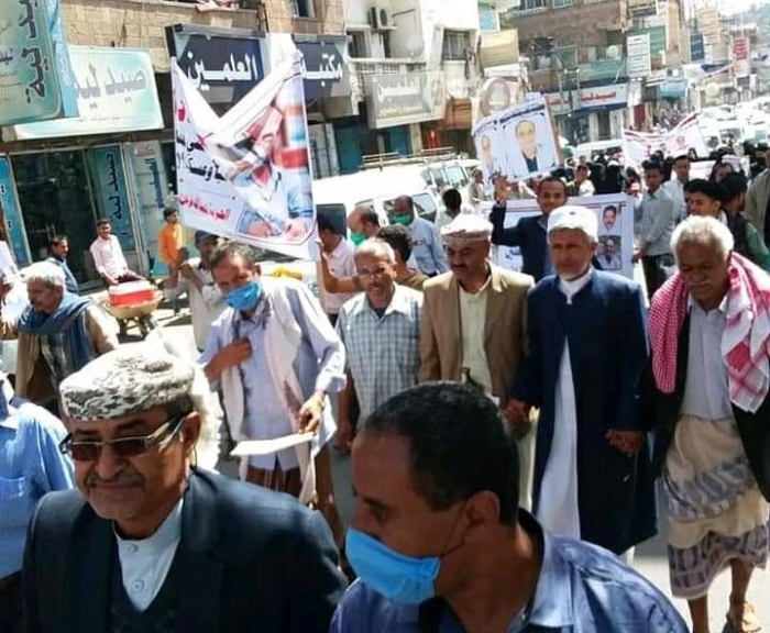 وخرج عن المشاركين في المسيرة، بيانا، أشار إلى مذكرات إطلق سراح المختطفين الثلاثة، مع إصرار المليشيا على عدم تنفيذهم، وتجاهلهم.