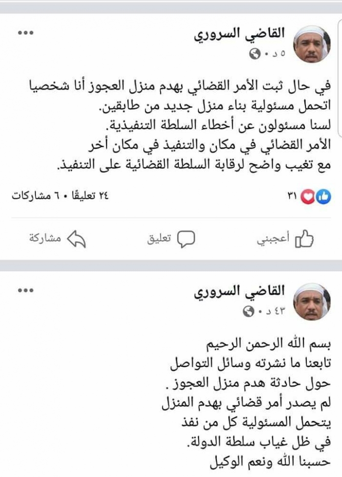 قاضي أمر هدم منزل أيتام تعز يتبرأ من المسؤولية
