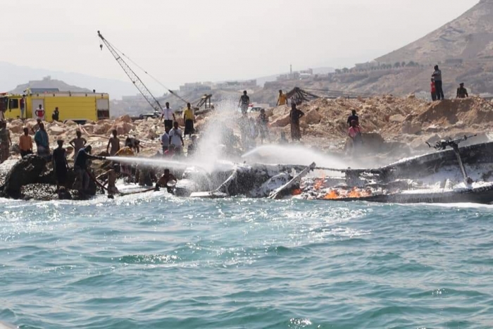 احترق زورق بحري تابع لقوات خفر سواحل حضرموت، اليوم السبت، لخلل فني، بالقرب من ساحل مدينة المكلا.