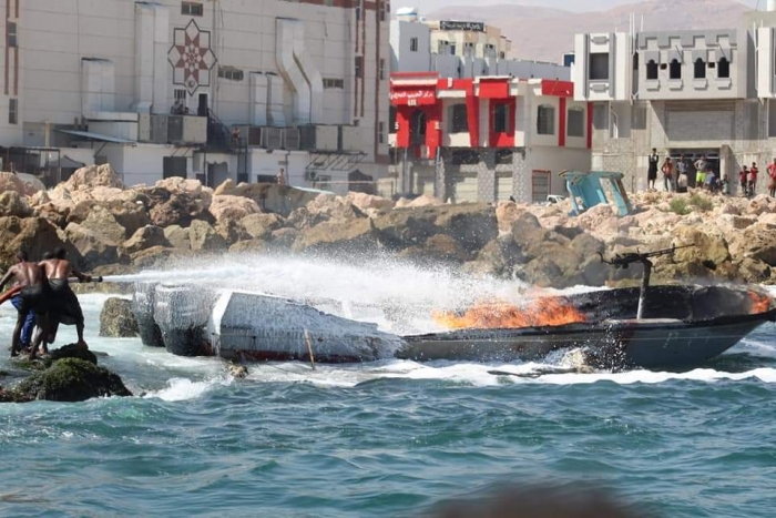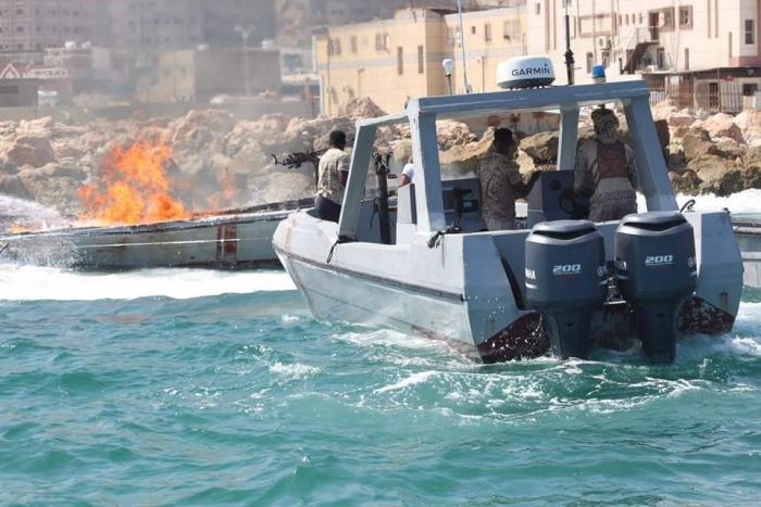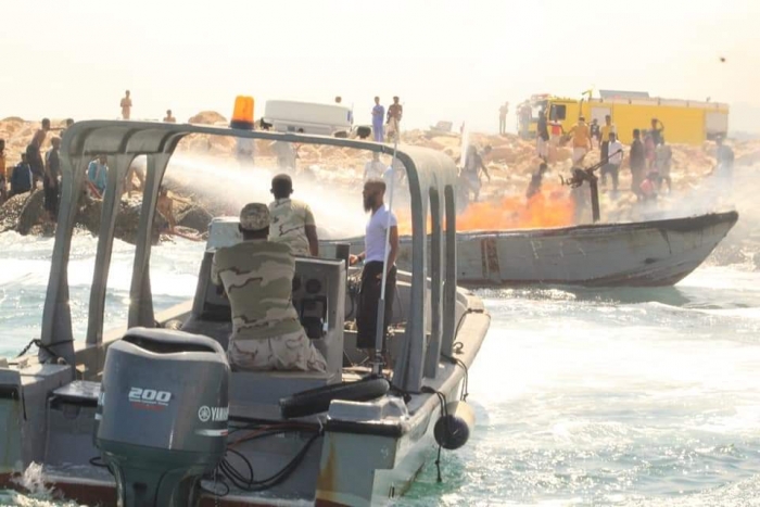 ووقع الحادث خلال توجه الزورق البحري إلى موقع الحمراء في مهمة عسكرية، قبل إبلاغ غرفة عمليات قوات خفر السواحل، بنشوب الحريق.