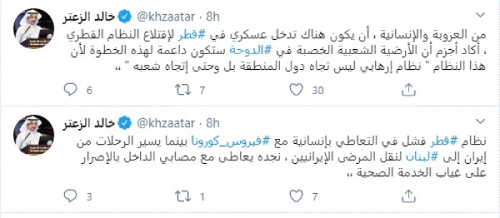 طالب المحلل السياسي السعودي خالد الزعتر، بالإطاحة بالنظام القطري وذلك جراء فشله في التعامل مع أزمة وباء كورونا.
