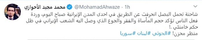 وقال في تغريدة عبر "تويتر" رصدها "المشهد العربي": "شاحنة تحمل البصل انحرفت عن الطريق في إحدى المدن الإيرانية صباح اليوم، وردة فعل الناس تؤكد حجم المأساة والفقر والجوع الذي وصل إليه الشعب الإيراني في ظل حكم خامنئي.. منظر محزن".