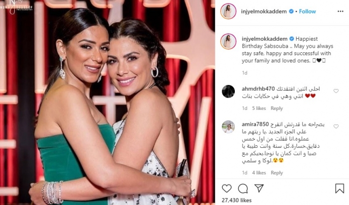 هنأت الفنانة إنجي المقدم، الفنانة الأردنية صبا مبارك بعيد ميلادها الـ44، الذي وافق أمس 10 أبريل.