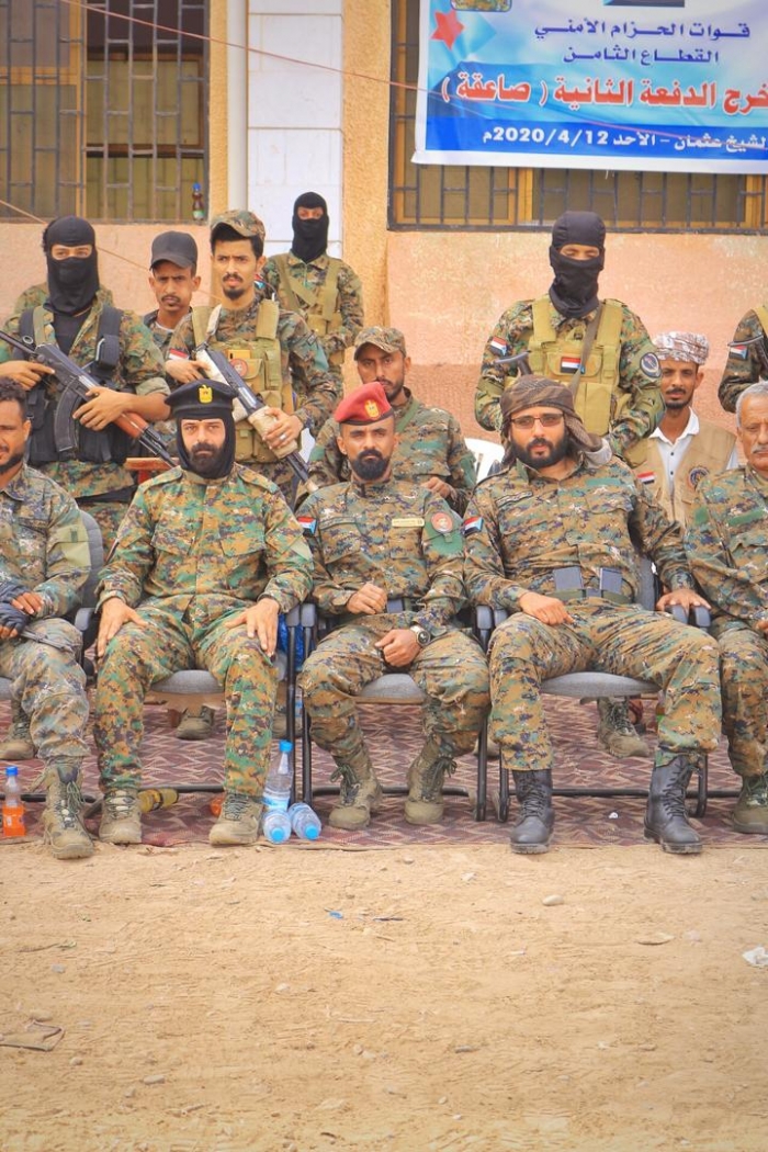 شهد القطاع الثامن لقوات الحزام الأمني، صباح اليوم الأحد، مراسم تخرج الدفعة الثانية صاعقة، التابعة لقوات الحزام الأمني بمديرية الشيخ عثمان في العاصمة عدن.