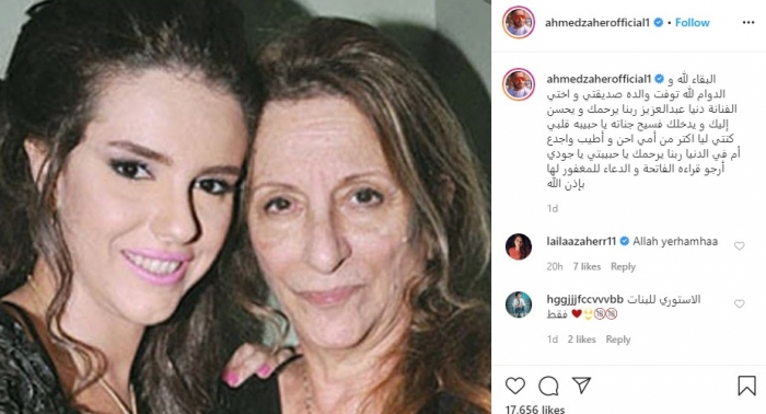 ونشر زاهر،صورة لدنيا ووالدتها، عبر حسابه على انستجرام، وعلق: "البقاء لله والدوام لله.. توفت والدة صديقتي وأختي الفنانة دنيا عبد العزيز.. ربنا يرحمك ويحسن إليك ويدخلك فسيح جناته يا حبيبة قلبي".