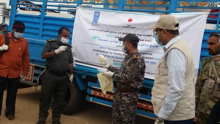 وزع برنامج الأمم المتحدة الإنمائي، اليوم الاثنين، في مديرية المكلا، حقائب صحية، على منتسبي أمن ساحل حضرموت.