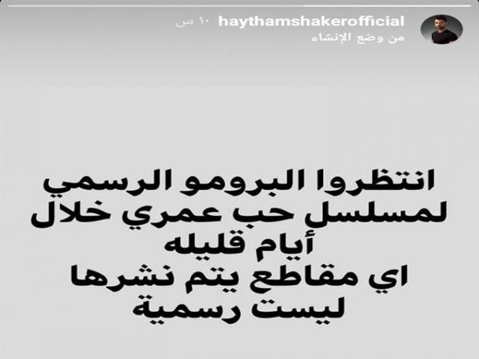 وكتب شاكر، عبر ستوري حسابه علي "إنستجرام"، قائلا: "انتظروا البرومو الرسمي لمسلسل حب عمري خلال أيام قليلة.. أي مقاطع يتم نشرها ليست رسمية".