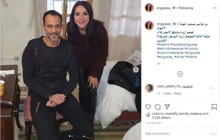 وعلقت "إنجي"، على الصور قائلة: "من كواليس مسلسل النهاية.. تصميم أزياء ستايلنج إنجي علاء".