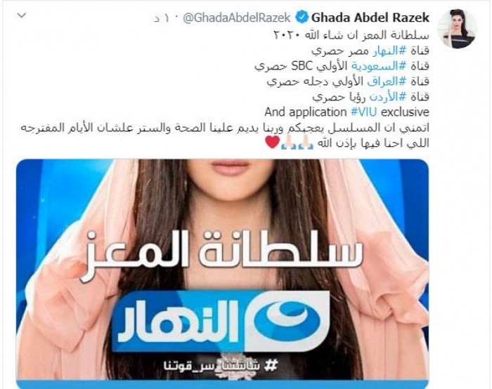 غادة عبدالرازق :مسلسل سلطانة المعز على هذه القنوات في رمضان