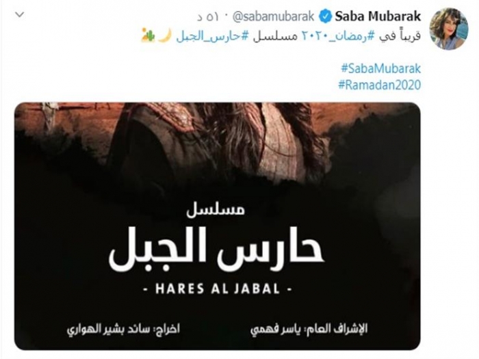 وغردت "صبا"، عبر تويتر قائلة: "قريبًا في رمضان 2020، مسلسل حارس الجبل".