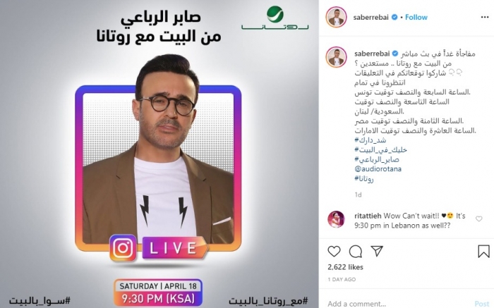 ونشر "الرباعي" بوسترًا، عبر حسابه الرسمي بموقع "إنستجرام"، وعلق :" مفاجأة اليوم في بث مباشر من البيت مع روتانا .. مستعدين ؟، شاركوا توقعاتكم في التعليقات ، انتظرونا في تمام الساعة السابعة والنصف توقيت تونس، الساعة التاسعة والنصف توقيت السعودية/ لبنان، الساعة الثامنة والنصف توقيت مصر، الساعة العاشرة والنصف توقيت الإمارات".