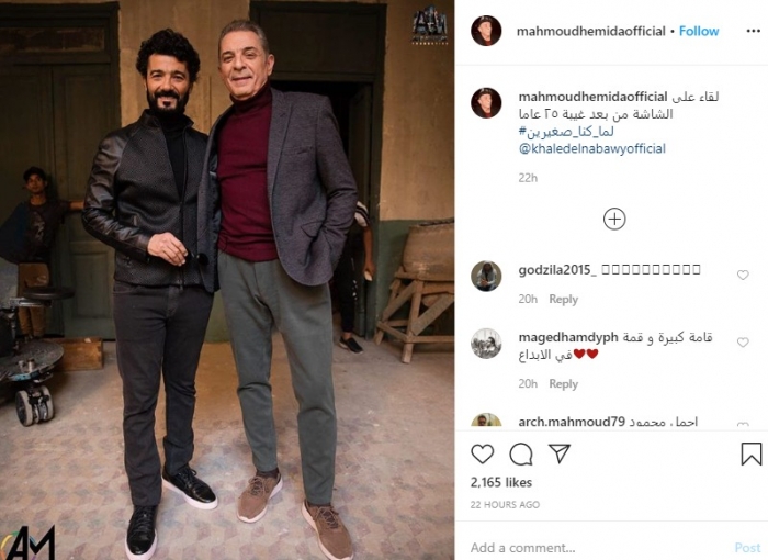 نشر الفنان محمود حميدة صورة تجمعه بالفنان خالد النبوي من كواليس مسلسل "لما كنا صغيرين"، المقرر عرضه رمضان المقبل 2020، عبر حسابه الرسمي بموقع "إنستجرام".