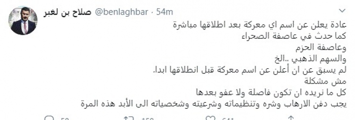 وقال في تغريدة عبر "تويتر" رصدها "المشهد العربي": "كما حدث في عاصفة الصحراء وعاصفة الحزم والسهم الذهبي ..الخ".