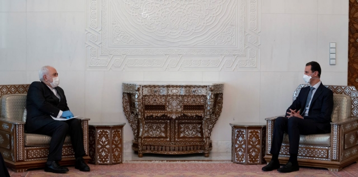 استقبل الرئيس السوري بشار الأسد، اليوم الاثنين، وزير الخارجية الإيراني محمد جواد ظريف، والوفد المرافق له، وارتدى الأسد وظريف وجميع المشاركين في اللقاء أقنعة واقية لمنع تفشي فيروس كورونا.