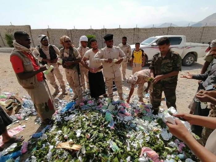 أتلفت قوات خفر سواحل حضرموت، اليوم الاثنين، 700 بندل قات في مقر قيادة خفر السواحل، بالمكلا، بعد ضبطها في محاولة تهريب قات عبر ساحل حصيحصة، في مديرية بروم ميفع.