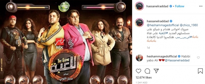 وكتب الرداد عبر انستجرام:" مبروك اخواتي هشام وشيكو على مسلسلهم الجديد اللعبة على قناة ام بي سي، هتكسروا الدنيا كالعادة".