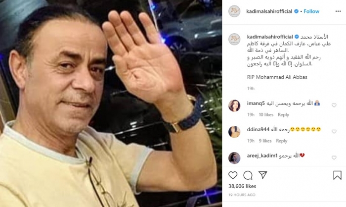 نشر الفنان العراقي كاظم الساهر على حسابه الشخصي بموقع إنستجرام تدوينة يعلن بها وفاة أحد أعضاء فرقته.