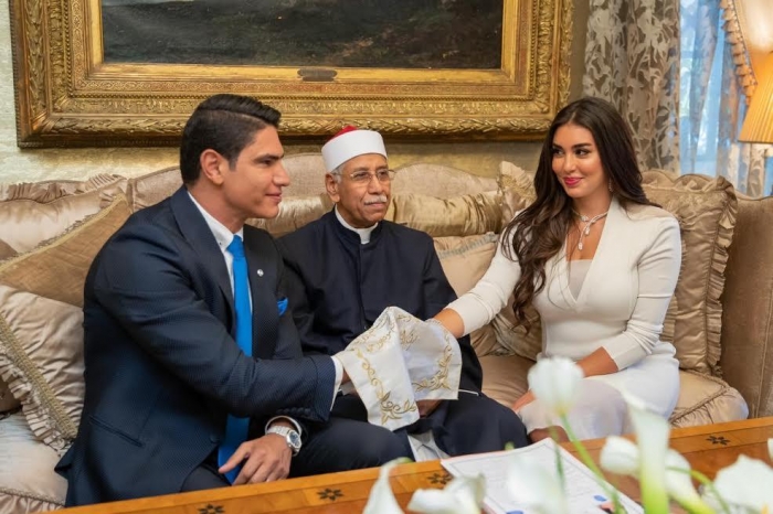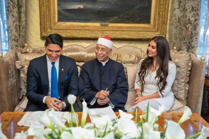 وظهرت ياسمين صبري في الصور وهي وكيلة نفسها أمام المأذون.