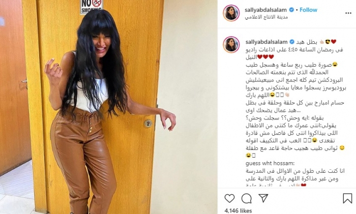 روجت المذيعة المصرية سالي عبدالسلام، لبرنامجها الإذاعي "بطل هبد"، من خلال حسابها بموقع "إنستجرام".