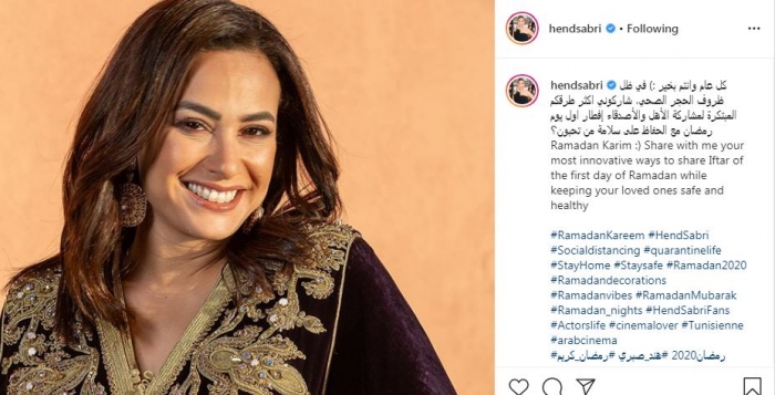 طالبت النجمة التونسية هند صبرى جمهورها بمشاركتها بأفكار مبتكرة لأول أيام شهر رمضان الكريم وذلك فى ظل ظروف الحجر الصحي التى فرضها الخوف من انتقال عدوي فيروس كورونا، ونشرت عبر حسابها بموقع "أنستجرام"، صورة بإطلالة رمضانية مبهرة.