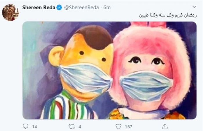 نشرت الفنانة شيرين رضا، صورة طريفة من الكلاسيكيات المعروفة في شهر رمضان لمسلسل الأطفال الشهير "بوجي وطمطم"، وشاركت شيرين، صورة المسلسل الشهير في رمضان عبر حسابها الرسمي بموقع "تويتر" لكن اضفت عليها بعض التعديلات الطريفة بما يتواكب مع انتشار فيروس كورونا المستجد في العالم، حيث وضعت "كمامة" على صورة الشخصيات الشهيرة "بوجي وطمطم" وهنأت المصريين قائلة: "رمضان كريم وكل سنة وكلنا طيبين".