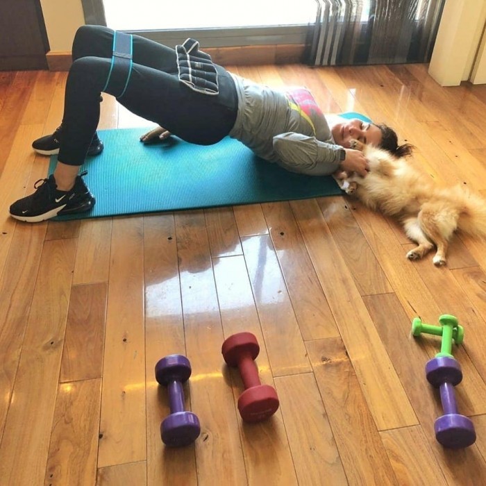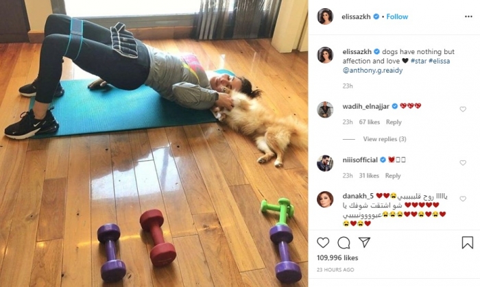 ونشرت النجمة اللبنانية صورة لها أثناء تدريبها داخل منزلها مع كلبها الأليف، عبر حسابها الشخصي بموقع الصور انستجرام، لتحظى بإعجاب الكثير من متابعيها وجمهورها.