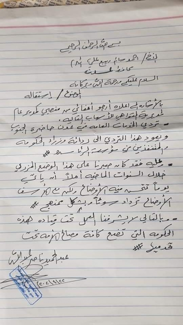 احتجاجاً على أداء الشرعية.. استقالة مدير عام التواهي (وثيقة)