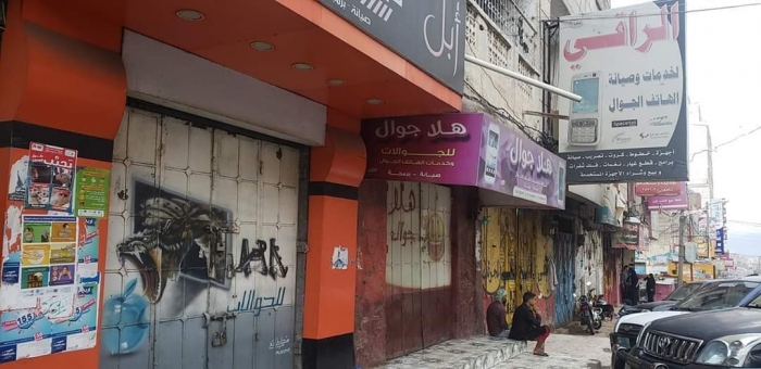 لليوم الثاني على التوالي، شهدت أسواق بيع أجهزة الاتصال المحمولة في تعز اليوم السبت شللا تاما في حركة البيع والشراء بسبب إغلاق المحال في مواجهة الفوضى الأمنية.