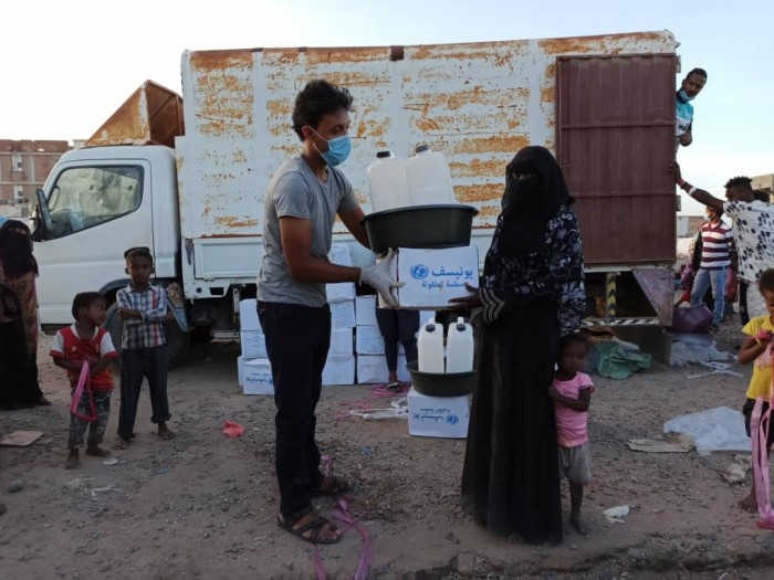 وزعت منظمة الأمم المتحدة للطفولة "يونيسف"، 700 حقيبة نظافة خلال الـ 48 ساعة في العاصمة عدن.