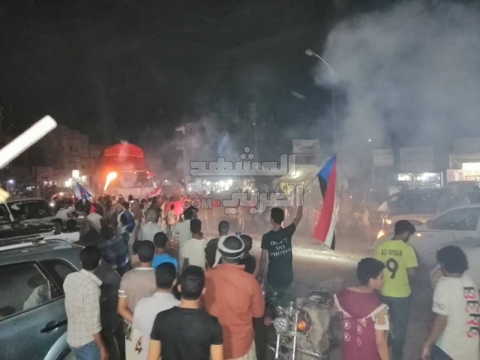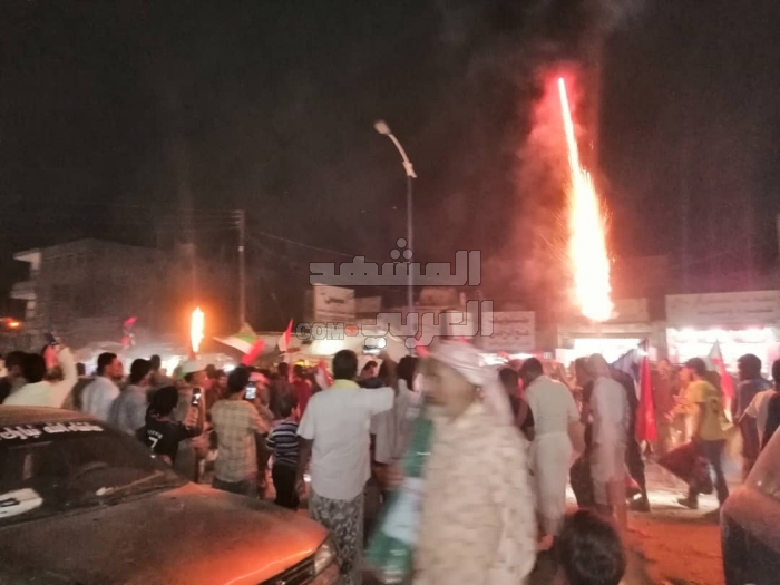 وأطلق المشاركون بالمسيرة التي شارك فيها مجموعة من الشخصيات البارزة، الألعاب النارية في الهواء تعبيراً عن فرحتهم بإعلان المجلس الانتقالي إدارة الجنوب.