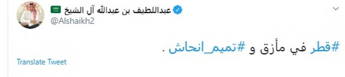وقال في تغريدة عبر "تويتر" رصدها "المشهد العربي": "قطر في مأزق وتميم انحاش".