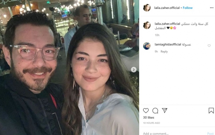 ونشرت ليلى، صورة لها مع والدها، وعلقت: "كل سنة وأنت ممثلي المفضل".